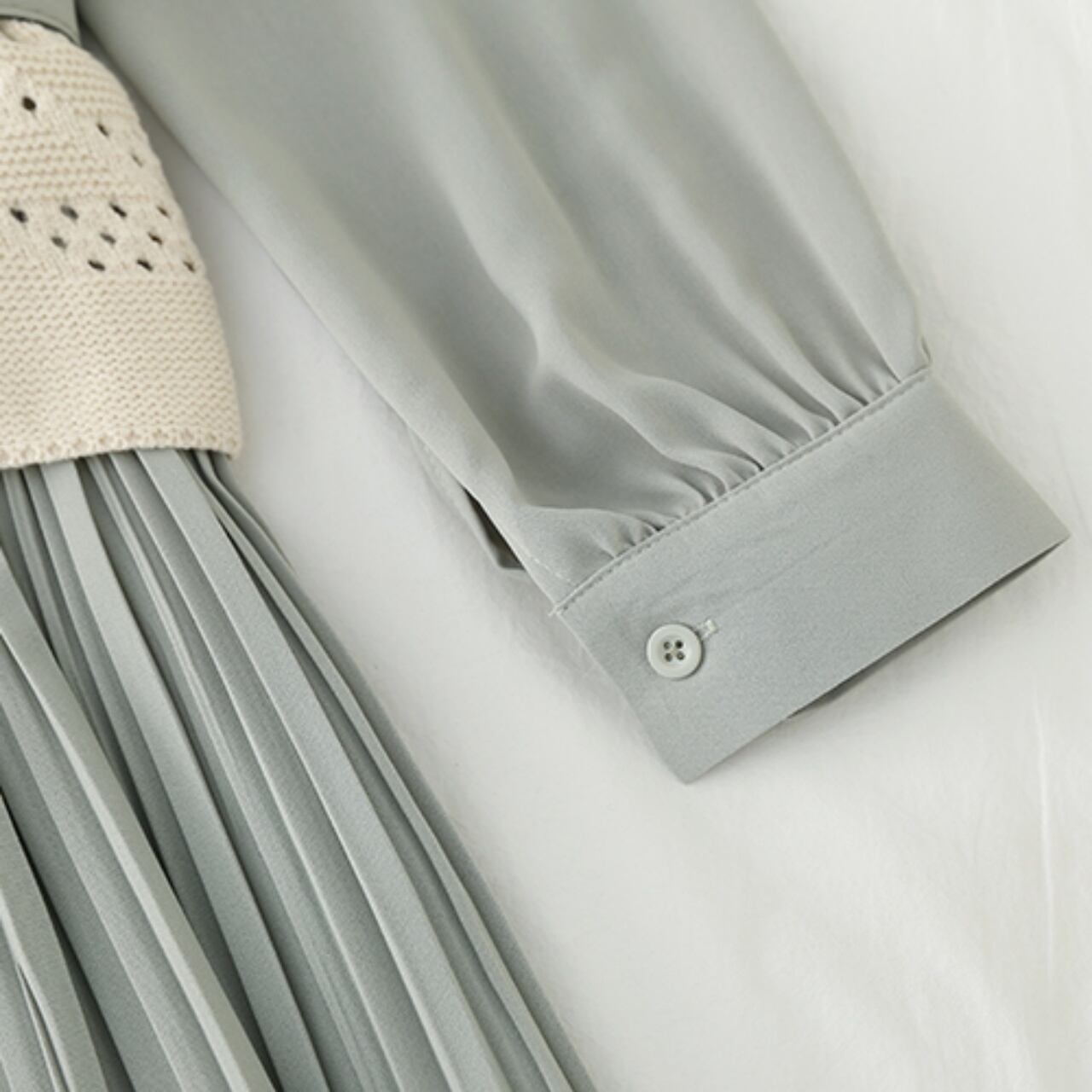 ワンピース レディース 2点セット ボータイ ウエスト切替 長袖 ギャザー 裾フレア Aライン 膝下 ベスト ニット クルーネック ウエストマーク ベルト付き 重ね着 レイヤード 大人可愛い かわいい きれいめ 清楚 カジュアル 大人女子 こなれ感 フェミニン オシャレ 3カラー 4サイズ 学生 OL ママ 休日 お出かけ ショッピング 女子会 食事会 イベント ファッション 簡単コーデ スタイルアップ 体型カバー 韓国系 海外ファッション インポート モテ トレンド 流行 おすすめ 人気 トレンド
