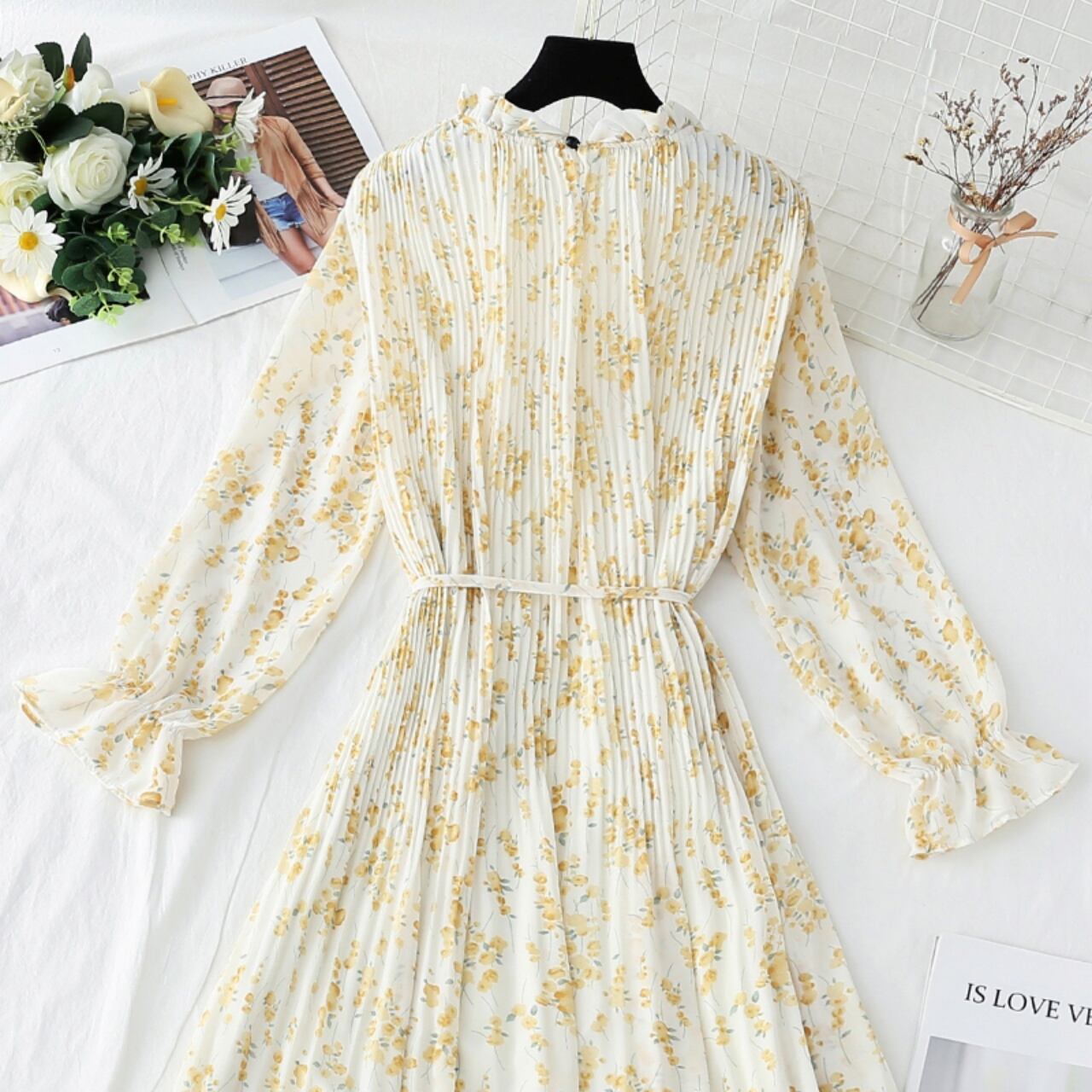 ワンピース レディース 小花柄 フリル プリーツ ウエストリボン Aライン 裾フレア 膝下 裏地あり 透け感 大人可愛い かわいい きれいめ 上品 清楚 こなれ感 カジュアル オシャレ フェミニン 4カラー 5サイズ サイズ豊富 学生 通学 OL ママ 休日 お出かけ デート ショッピング 映画館 女子会 食事会 イベント ホームパーティー 着回し 普段使い ファッション 簡単コーデ スタイルアップ 体型カバー 韓国系 海外ファッション インポート モテ トレンド 流行 おすすめ 人気 お得 プチプラ