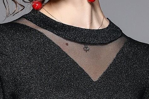 胸元のシースルー部分が抜け感を出し、重苦しくならずにあか抜けて見えます。