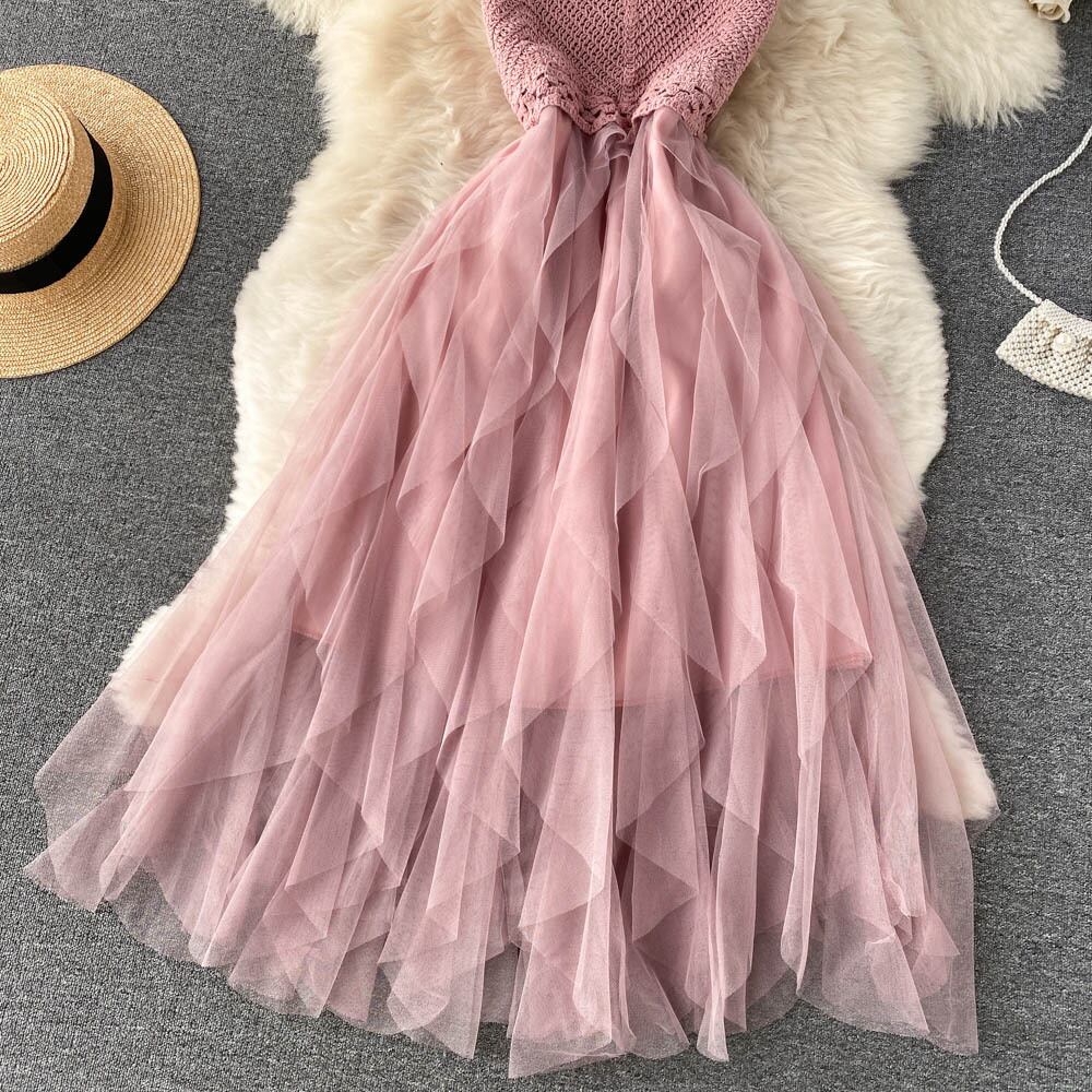 パーティードレス メッシュスカート ミディアム丈 ミディ ミモレ丈 ドレス ワンピースドレス ワンピ トレンド トレンディ シンプル 流行 お呼ばれ 二次会 披露宴 発表会 ウエディング 主役級 レディースファッション レディース 婦人服 おしゃれ かわいい 大人かわいい デザイン重視 アシンメトリーデザイン チュチュスカート フェアリースタイル インポート プチプラ ランキング 大人女子 10代 20代 30代 不規則 ネットガーゼ ふわふわ フェアリースカート ハイウエスト Vネックサスペンダースカト