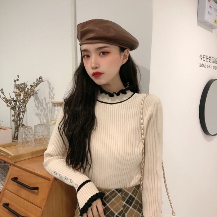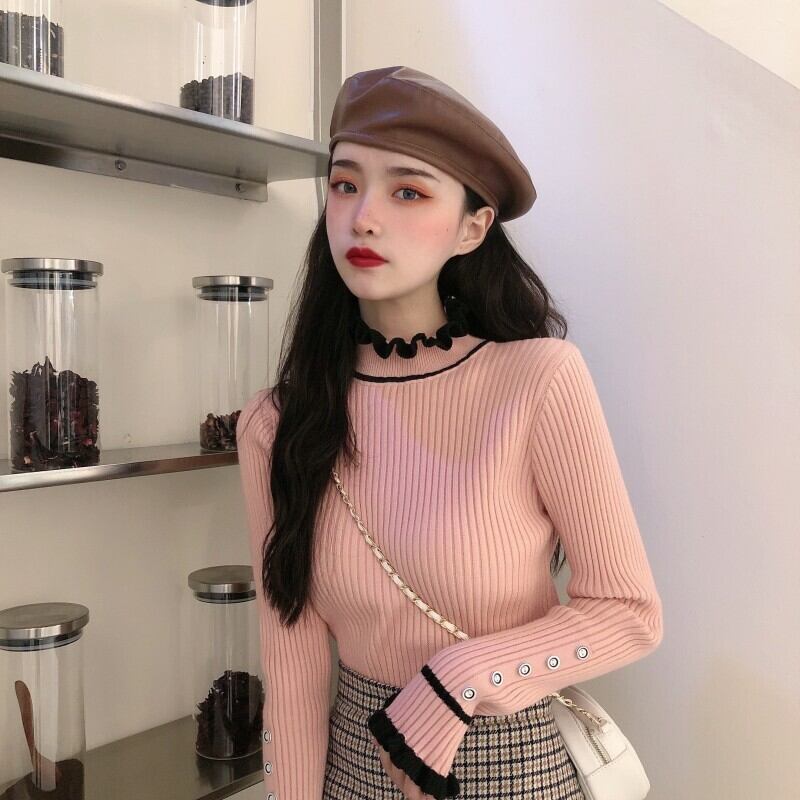 トップス レディース ニット セーター 袖あり 長袖 萌袖 ハイネック オフネック フリル ひらひら リブニット ツートンカラー 無地 黒 ブラック 白 アプリコット ピンク ボタン かわいい 大人可愛い 大人 大人女子 きれいめ おしゃれ お洒落 シンプル ラブリー キュート ガーリー 10代 20代 30代 通勤 学生 通学 デート お出かけ 女子会 休日 イベント 普段使い スリム タイト カジュアル こなれ感 ラフ 抜け感 ゆる 上品 エレガント あったか 暖かい 防寒 伸縮性 着回し モテ