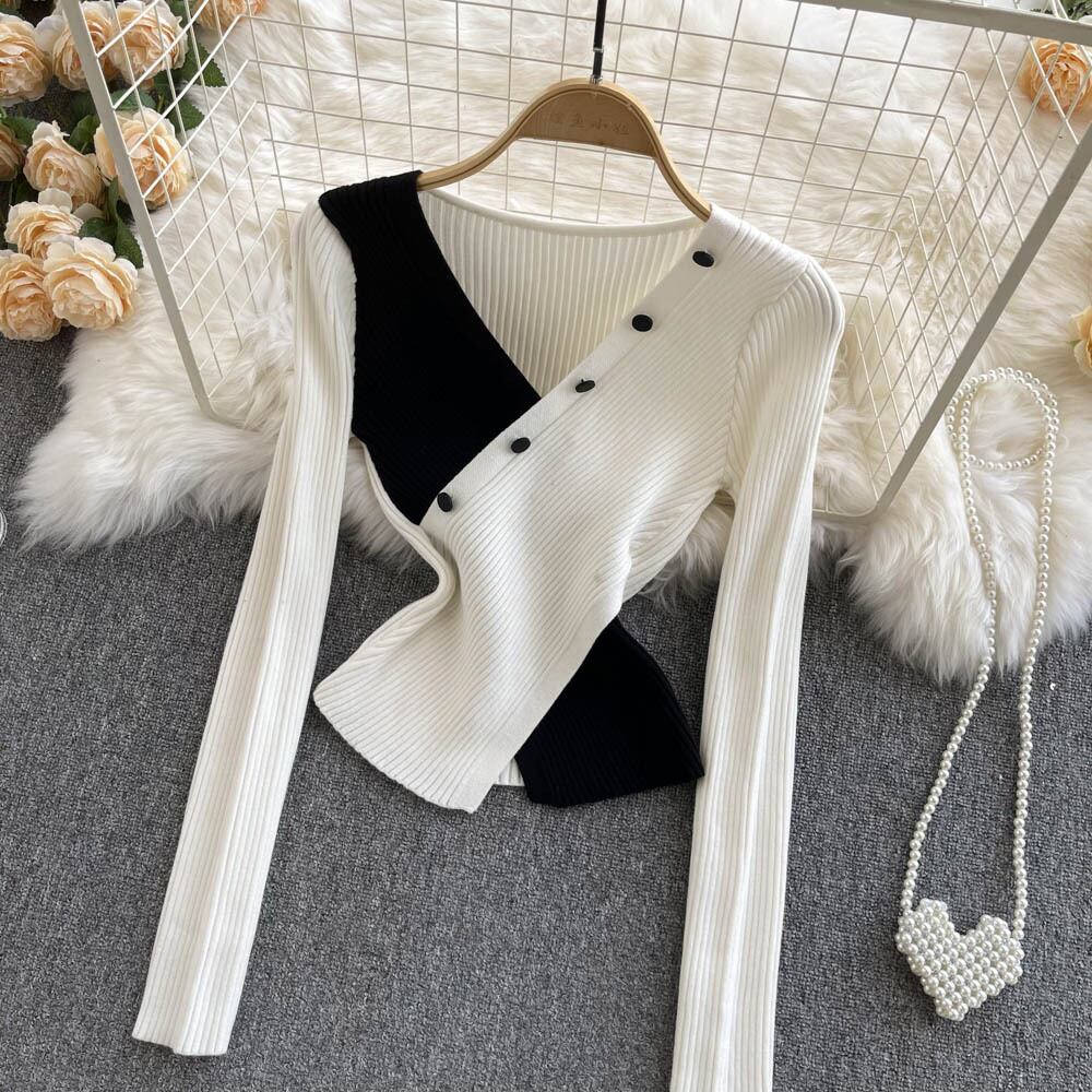 ニット 秋冬セーター 暖かい ホットアイテム 海外ファッション ピンク ブラック 普段着 かわいい オシャレ 大人女子 お出かけ 旅行 ドライブ デート 通勤 通学 OL ママ 二次会 飲み会 合コン カジュアル ストリート お呼ばれ イベント ショッピング 旅行 インポートファッション ネットショッピング きれいめ 大人クール シンプル デザイン重視 メンズライク モテ 20代 30代 40代 クロスVネック ヒットカラー 不規則 レディースファッション レディース 婦人服 優しい色 フロントボタン