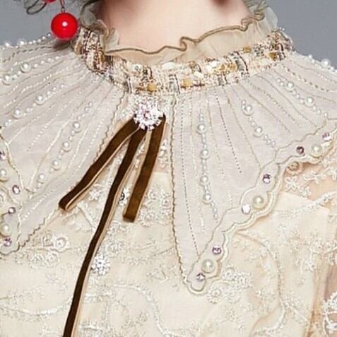 フリルやレースがゴールドのラインで縁取られ、ラグジュアリーさもひとさじ加わっています。