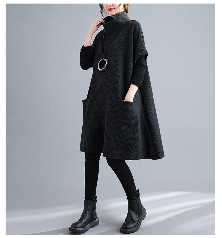 ワンピース レディース 膝下 半袖 プルオーバー オーバーサイズ ぶかぶか ポケット ハイネック タートルネック ワイド 灰色 グレー 黒 ブラック モノトーン 大人カラー ゆったり かわいい 大人可愛い 大人 大人女子 きれいめ おしゃれ お洒落 シンプル ラブリー キュート ガーリー 10代 20代 30代 学生 通学 デート お出かけ 女子会 休日 イベント 普段使い シック ストレート カジュアル こなれ感 ラフ ルーズ 抜け感 ゆったり ゆる 大きめ 着回し 重ね着 体系カバー 冬 秋