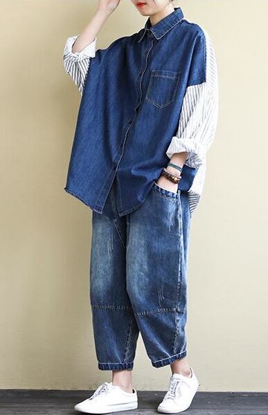 トップス レディース シャツ デニム 袖あり 長袖 襟付き スタンダードカラー ワイド ストライプ ポケット パッチワーク オーバーサイズ ぶかぶか ボタン ボタンダウン 前開き 異素材MIX かわいい 大人可愛い 大人 大人女子 きれいめ おしゃれ お洒落 シンプル かっこいい メンズライク マニッシュ ボーイッシュ 10代 20代 30代 通勤 学生 通学 デート お出かけ 女子会 休日 イベント 普段使い ストレート カジュアル こなれ感 ラフ ルーズ 抜け感 ゆったり ゆる 着回し 楽ちん