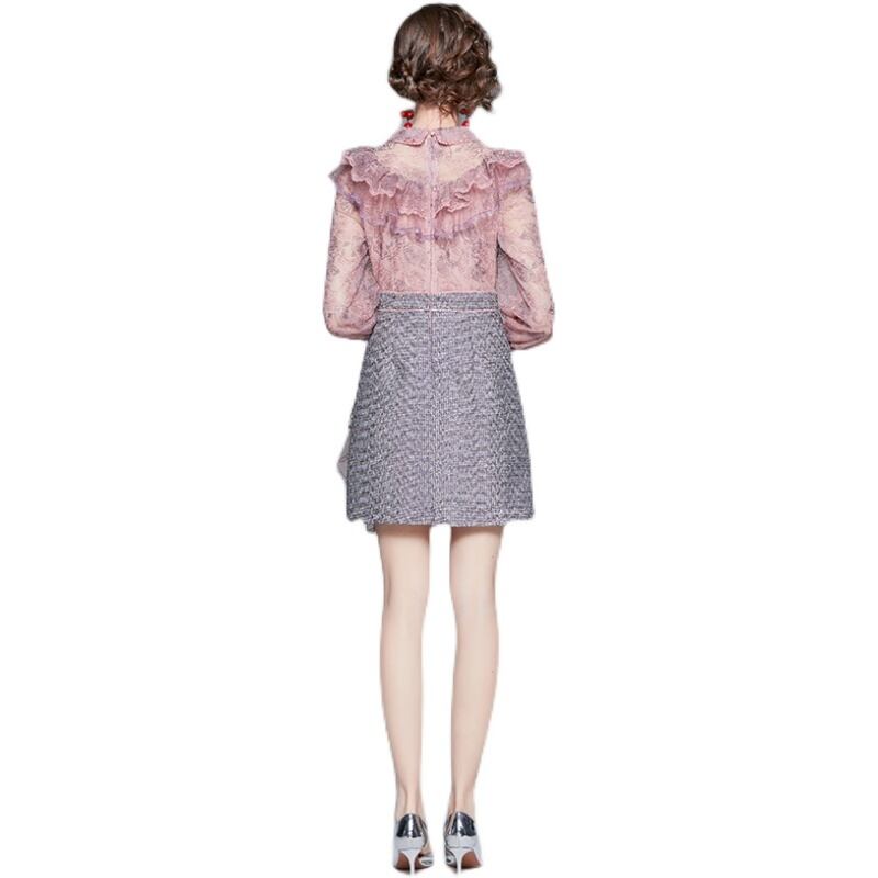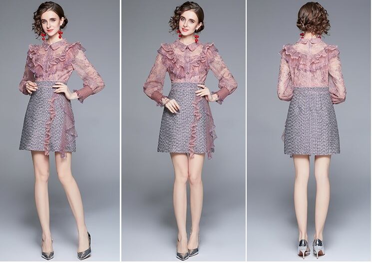 長袖ドッキングワンピ セットアップ レディース レギュラーカラー タイトスカート 膝上丈 胸元ラッフル フリル シースルー 後ろファスナー 透け感 スモーキーカラー ピンク系 グレー系 透明感 くすみカラー 大人可愛い おしゃれ トレンド ハイウエスト 簡単コーデ 大人女子 通勤 通学 パーティー ホームパーティー お食事 リモートワーク テレワーク お呼ばれ デート フェミニン 上品 清楚 クラシカル 韓国服 韓国ファッション プチプラ インポート お買い得 サイズ豊富 低価格 値段重視 着まわせる
