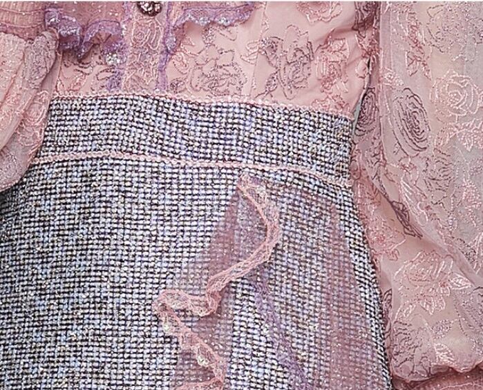 シースルーと胸元のラッフルがフェミニンで可愛らしく素敵。