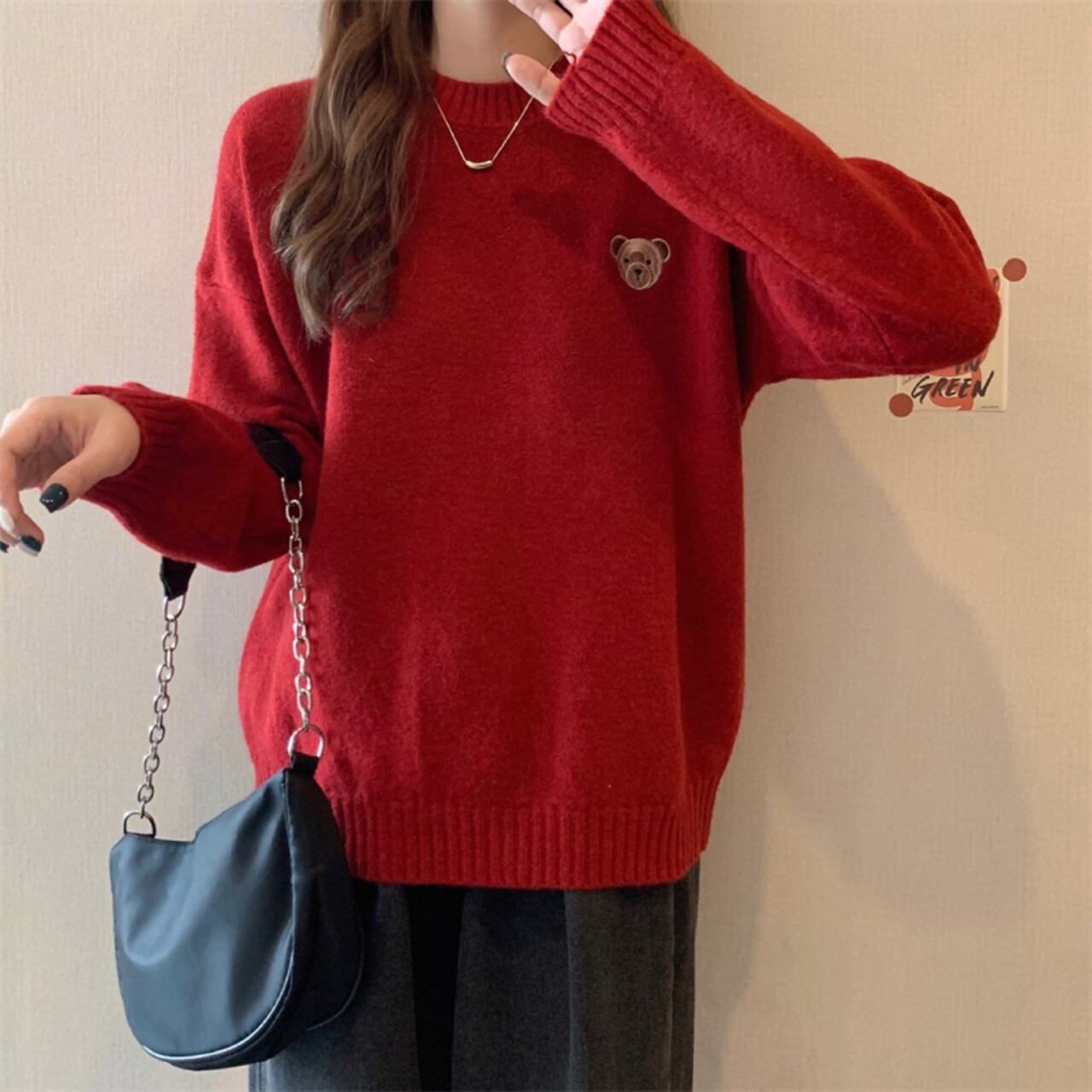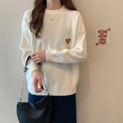 トップス ニット プルオーバー クルーネック ワンポイント くまさん アクセント 長袖 袖長め 4カラー ワンサイズ 秋 冬 大人可愛い かわいい カジュアル ラフ ルーズ キュート ラブリー フェミニン こなれ感 抜け感 個性的 シンプル 10代 20代 ショッピング 公園 遊園地 休日 デイリー お出かけ 旅行 デート 食事会 女子会 着回し 普段使い 韓国系 インポート 海外ファッション セレクト モテ おすすめ 人気 簡単コーデ 楽ちん インパクト あたたか トレンド 流行 デイリー 体型カバー