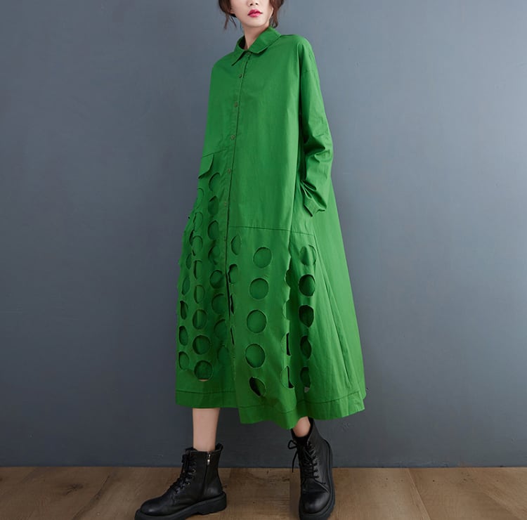 ワンピース アシンメトリー ドット柄 丸 点々 緑 グリーン 黒 ブラック ロングスカート ポケット ロング丈 ロング レディース 袖あり 長袖 襟付き スタンドカラー ボタン ボタンダウン 前開き かわいい 大人可愛い 大人 大人女子 きれいめ おしゃれ お洒落 シンプル ラブリー キュート ガーリー 10代 20代 30代 学生 通学 デート お出かけ 女子会 休日 ママ マタニティ イベント 普段使い カジュアル こなれ感 ラフ ルーズ 抜け感 ゆったり ゆる 個性的 モード系 アシンメトリー