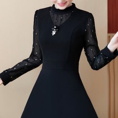 ブラックワンピース フレアースカート水玉ドレス ドット柄 シースルー新作 海外デザイン インポートファッション プチプラ 海外 可愛らしい 定番カラー シンプル 冠婚葬祭 長袖 ハーフネック ひざ丈 黒系 水玉アクセント ブラックドレス 大人っぽい 色っぽい 艶やか クールビューティー エレガント パーティー お食事 ナイトクルーズ ディナー 特別な日 デート 飲み会 ホームパーティー 綺麗め 高見え クール かっこいい 韓国服 韓国ファッション お買い得 着まわし ホットアイテム おススメデザイン 重視
