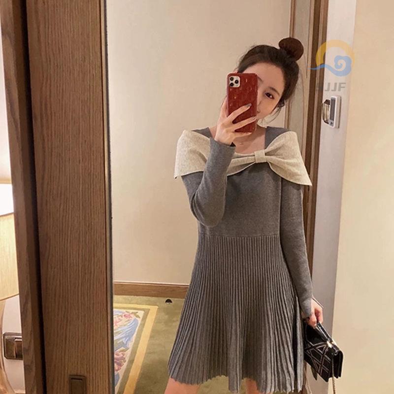 ワンピース ひざ丈 ニットスカート ニット 袖あり 長袖 レッド 赤 灰色 グレー ブラック 黒 リボン プルオーバー スクエアカラー ハイウエスト プリーツスカート 伸縮性 かわいい 大人可愛い 大人 大人女子 きれいめ おしゃれ お洒落 レディース シンプル ラブリー キュート ガーリー フェミニン 10代 20代 30代 通勤 学生 通学 デート お出かけ 女子会 イベント スリム 細身 ストレート カジュアル こなれ感 ルーズ 抜け感 ゆったり ゆる 上品 エレガント パーティー レトロ