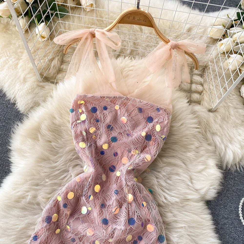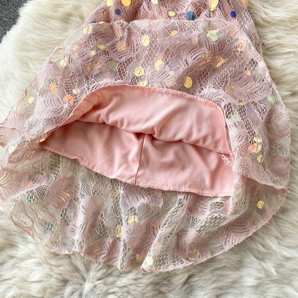 ワンピース Aラインワンピ ピンク スパンコールキラキラ ミモレ丈 柄 春 夏 秋 冬 Aライン レース 切り替えデザイン かわいい 大人可愛い きれいめ 大人 上品 おしゃれ お洒落 大人可愛い 大人女子 とろみ感 スクエアネック ミモレレディース 袖なし 異素材MIX ピンク くすみカラー 大人カラー 光沢 S M L 20代 30代 デート 女子会 休日 パーティー イベント 着回し 韓国 韓国系 オルチャン ファッション コーデ スタイル モテ 新作 定番 プチプラ トレンド 流行 インスタ映え