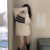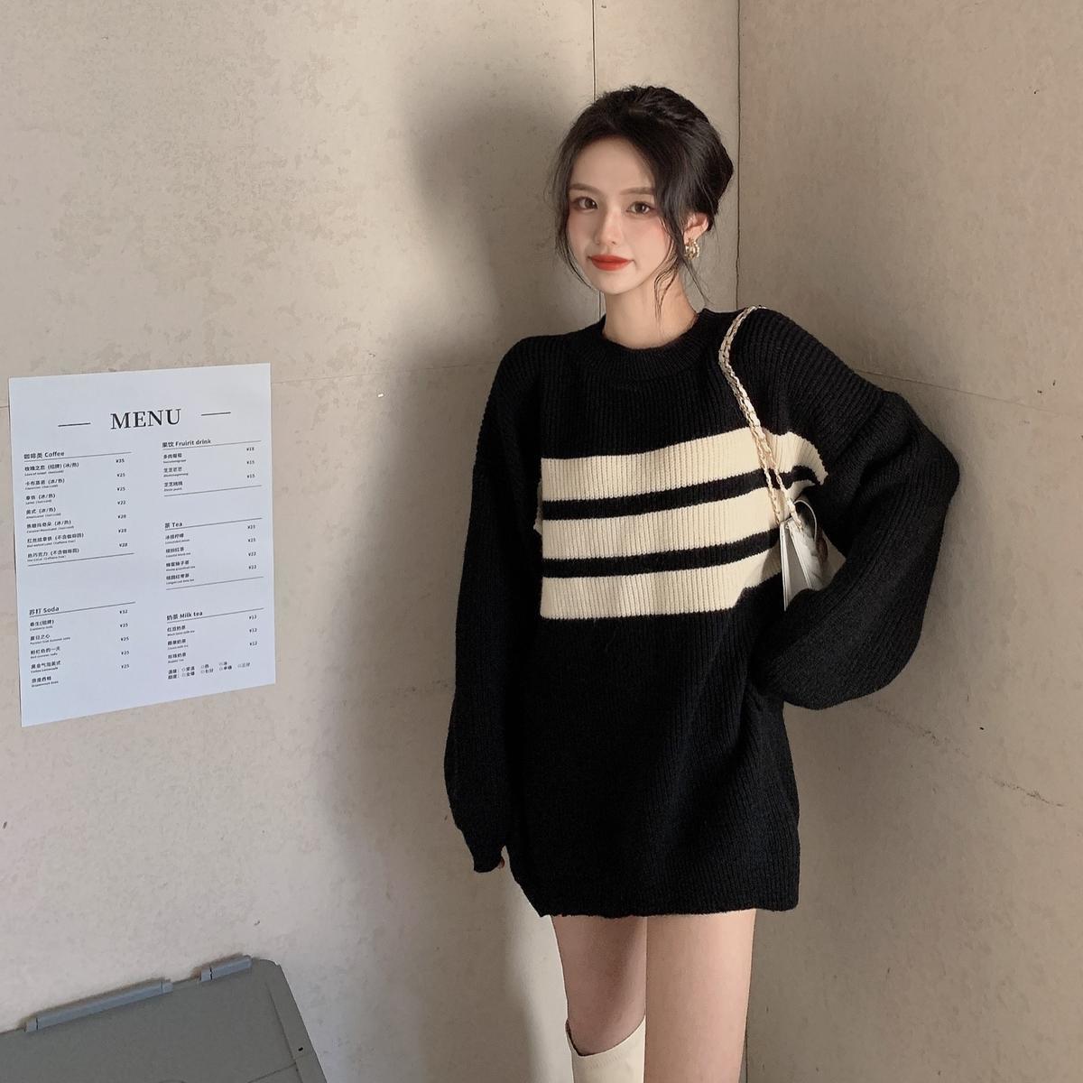 ニット レディース ニットワンピ チュニック丈 プルオーバー リブ クルーネック ボーダー ボリューム袖 袖長め ドロップショルダー 3カラー 4サイズ 秋 冬 大人可愛い かわいい オシャレ カジュアル ラフ ルーズ キュート こなれ感 抜け感 きれいめ 学生 通学 OL ショッピング 公園 休日 デイリー お出かけ 旅行 デート 食事会 女子会 着回し 普段使い 韓国系 インポート 海外ファッション セレクト モテ 体型カバー おすすめ 人気 簡単コーデ 楽ちん インパクト あたたか トレンド 流行