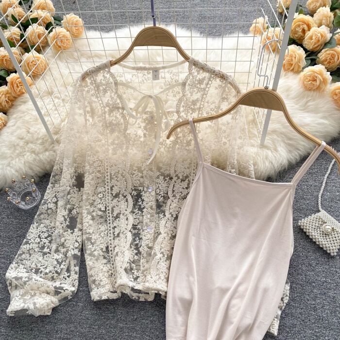 セットアップ レディース トップス プルオーバー キャミソール 袖あり 長袖 襟なし リボン レース 異素材MIX 透け感 シースルー 白 アプリコット かわいい 大人可愛い 大人 大人女子 きれいめ おしゃれ お洒落 シンプル ラブリー キュート ガーリー フェミニン 10代 20代 30代 通勤 学生 通学 デート お出かけ 女子会 休日 イベント 普段使い カジュアル こなれ感 ラフ ルーズ 抜け感 ゆったり ゆる セクシー パーティー フローラル 花柄 小花柄 フラワー ボタニカル ひらひら