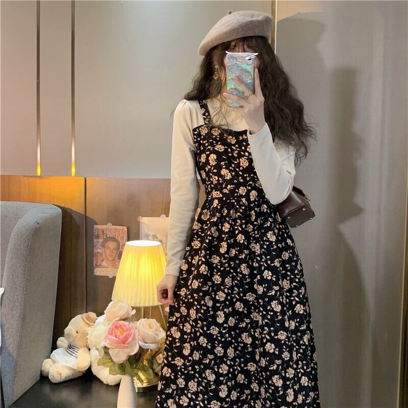 ワンピース ミドル丈 ミドル アプリコット 黒 ブラック 柄 花柄 フラワープリント 長袖 パフスリーブ 襟なし ラウンドネック Aラインスカート Aライン レトロ プルオーバー かわいい 大人可愛い 大人 大人女子 きれいめ おしゃれ お洒落 シンプル ラブリー キュート ガーリー フェミニン 10代 20代 30代 通勤 学生 通学 デート お出かけ 女子会 休日 イベント 普段使い カジュアル こなれ感 ラフ 抜け感 スリム パーティー 旅行 個性的 存在感 モテ 着回し ハイウエスト 萌え袖