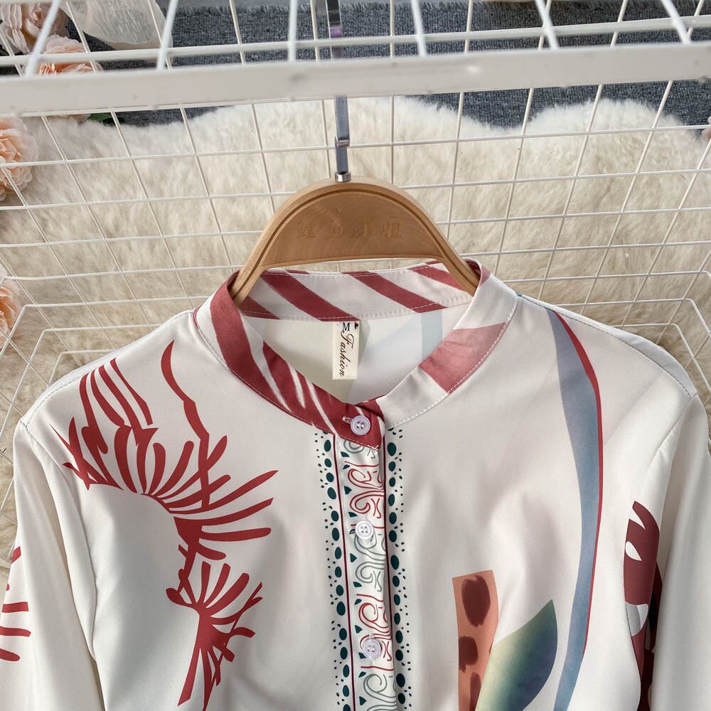 レディース柄ワンピース 共布ベルト 総柄 長袖 マオカラー スタンドカラー 前ボタン 襟なし アジアンテイスト ホワイト系 プリント柄 ミモレ丈 Aライン ハイウエスト ベルト付き おしゃれ ユニーク柄 トレンド シャツワンピ 大人女子 通勤 通学 オフィスカジュアル ランチ 女子会 リモートワーク テレワーク お食事 お呼ばれ 綺麗め 清潔感 大人っぽい 20代 30代 40代 高見え 爽やか 秋冬 ロングワンピース インポート 大人スタイル 韓国服 韓国ファッション 低価格 プチプラ お買い得 重ね着