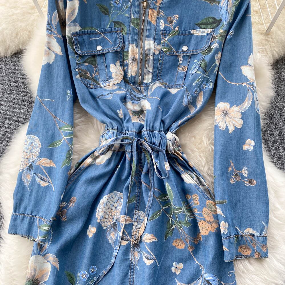 ワンピース デニムワンピ デニムスカート ミモレ丈 ミモレ 袖あり 半袖 襟付き スタンダードカラー ウエストマーク ウエストリボン リボン ファスナーレディース バックスリット かわいい 大人可愛い 大人 大人女子 きれいめ おしゃれ お洒落 シンプル ラブリー キュート ガーリー フェミニン 10代 20代 30代 通勤 学生 通学 デート お出かけ 女子会 休日 イベント 普段使い カジュアル こなれ感 ラフ ルーズ 抜け感 ゆったり ゆる フローラル 花柄 小花柄 フラワー ボタニカル モテ