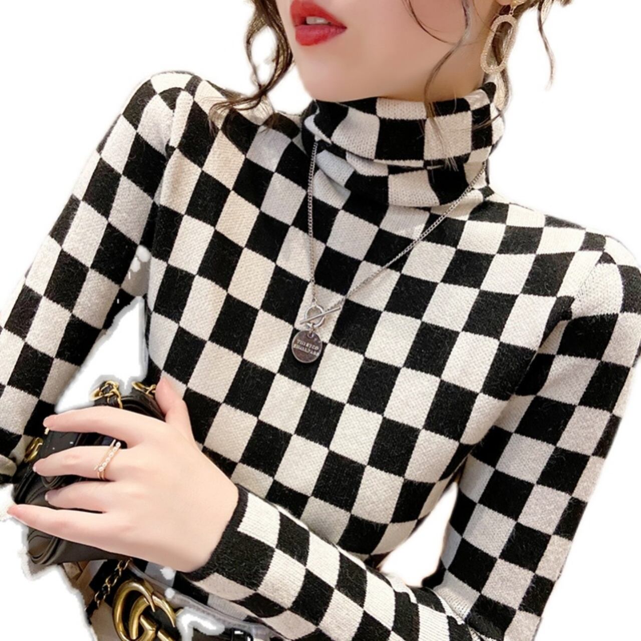 トップス 市松模様 モノトーン プルオーバー タートルネック ハイネック 長袖 袖長め チェック5サイズ サイズ豊富 秋 冬 レディース 大人可愛い かわいい 大人女子 大人 カジュアル ラフ ルーズ こなれ感 抜け感 きれいめ 上品 シック オシャレ お洒落 定番 学生 通学 OL ママ ミセス 公園 旅行 休日 お出かけ ショッピング デート 食事会 女子会 着回し 普段使い 韓国系 インポート 海外ファッション セレクト モテ おすすめ 人気 体型カバー スタイルアップ 新作 ハイセンス トレンド