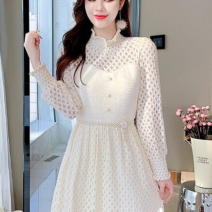 ワンピース レディース Aラインワンピース ミモレ丈 長袖 柄 秋 冬 セミフレア Aライン レース シースルー かわいい 大人可愛い きれいめ シンプル 大人 上品 おしゃれ 大人可愛い 大人女子 エレガント 主役級 存在感 フォーマル ハイネック ミモレ 袖あり 白 ホワイト S M L XL 20代 30代 女の子 デート お出かけ 女子会 休日 パーティー イベント 着回し 韓国 韓国系 オルチャン ファッション コーデ スタイル 楽ちん モテ ダメージ トレンド 流行 インスタ映え
