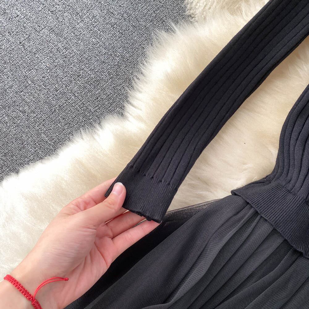 ワンピース レディース ニット チュールスカート ロングスカート ロング ロング丈 袖あり 長袖 ラウンドネック Uネック 襟なし ギャザー レース チュール シフォン ボタン 異素材MIX 黒 ブラック かわいい 大人可愛い 大人 大人女子 きれいめ おしゃれ お洒落 シンプル ラブリー キュート ガーリー フェミニン 10代 20代 30代 学生 通学 デート お出かけ 女子会 休日 普段使い タイト 細身 カジュアル こなれ感 ラフ 抜け感 ゆったり ゆる 上品 エレガント パーティー イベント