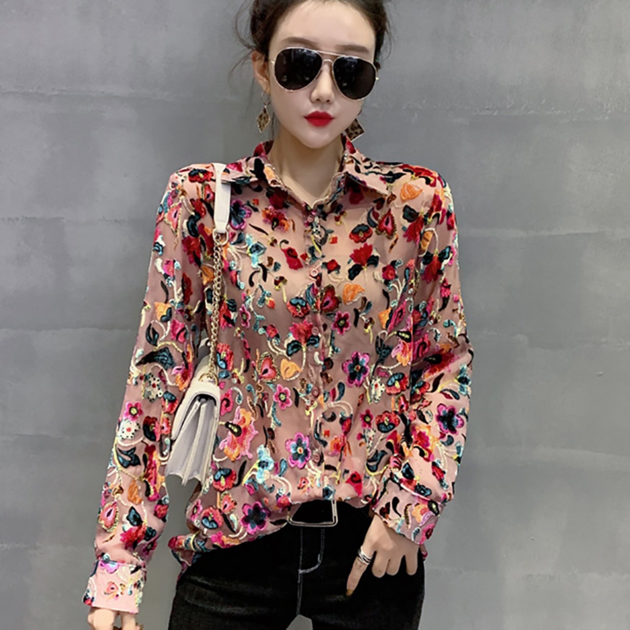 トップス 花柄ブラウス シャツ 襟付きシャツ 襟付き 袖あり 長袖 ボタン プリント 柄 花柄 ストリート ストレート 秋 冬 かわいい 大人可愛い きれいめ 主役級 カジュアル 大人 上品 おしゃれ お洒落 レトロ 大人可愛い 大人女子 エレガント Vネック 長め ピンク S M L XL 2XL 3XL 20代 30代 学生 通学 OL 通勤 デート お出かけ 女子会 休日 着回し 普段使い 韓国 韓国系 オルチャン ファッション コーデ スタイル モテ 新作 プチプラ トレンド 流行 インスタ映え
