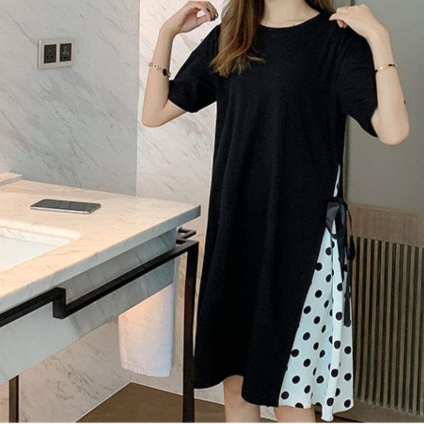 水玉ワンピース ドット柄ワンピース ドレス リボン 黒 ブラック 切り替えしデザイン リボンベルト ティシャツ風 半袖 ハーフスリーブ カジュアルス トリート 着心地良し 海外デザイン インポートファッション かわいい 大人可愛い 大人 大人女子 きれいめ おしゃれ お洒落 ラブリー キュート ガーリー フェミニン 10代 20代 30代 通勤 学生 通学 デート お出かけ 女子会 休日 イベント 普段使い こなれ感 ラフ 抜け感 ゆったり ゆる 上品 入学式 パーティー レトロ とろみ感 着回 しモテ