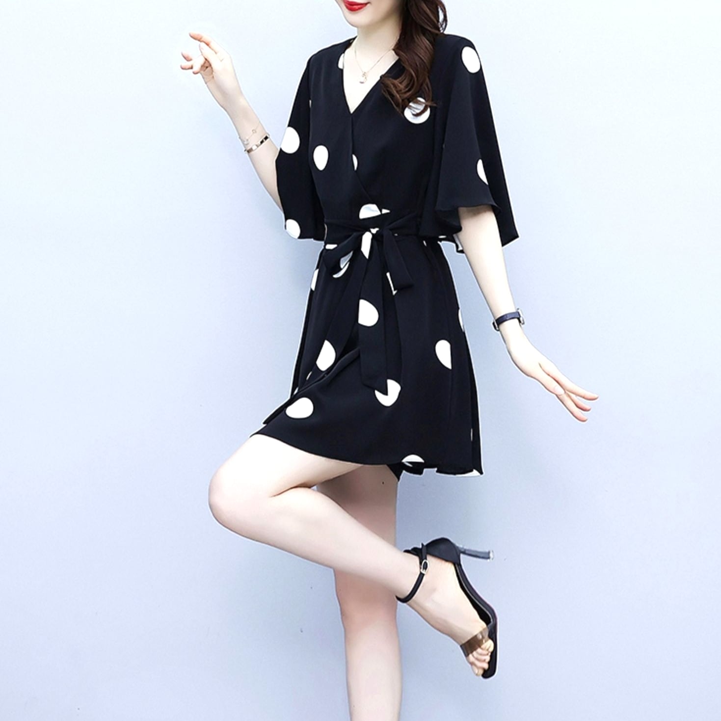 水玉ツーピース 上下セット セット パンツ ショートパンツ ドット柄ワンピース ショート丈 パンツ ひらひら 二の腕カバー ボリューム袖 Vネック ラクチンコーデ 半袖ワンピース ワンピドレス 新作 トレンディ 黒 ブラック かわいい 大人可愛い 大人 大人女子 きれいめ おしゃれ お洒落 シンプル ラブリー キュート ガーリー フェミニン 10代 20代 30代 通勤 学生 通学 デート お出かけ 女子会 休日 イベント 普段使い カジュアル こなれ感 ルーズ 抜け感 二次会 披露宴 パーティー 人気