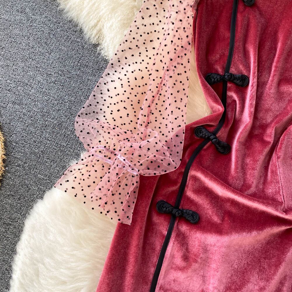 ワンピース アジアン エスニック エキゾチック タイトワンピース ドット 水玉 ピンク ひざ下 長袖 柄 秋 冬 スリム タイト 細身 ストレート Iライン サイドスリット かわいい 大人可愛い きれいめ シンプル カジュアル 大人 上品 おしゃれ お洒落 レディース 大人可愛い 大人女子 セクシー エレガント ミモレ 袖あり 大人カラー S M L XL 20代 30代 デート お出かけ 休日 パーティー イベント 着回し 韓国 ファッション コーデ スタイル モテ 美脚 トレンド 流行 インスタ映え