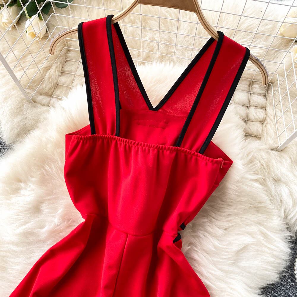 ワンピース レディース Aラインワンピース ミニ丈 ショート丈 ノースリーブ 無地 秋 冬 スリム ストレート Aライン 裾フレア リボン かわいい 大人可愛い きれいめ シンプル カジュアル 大人 上品 おしゃれ お洒落 大人可愛い 大人女子 個性的 モダン 主役級 存在感 フォーマル Vネック ショート 袖なし 黒 ブラック 赤 レッド ワンサイズ 20代 30代 デート お出かけ 女子会 休日 パーティー イベント 韓国 韓国系 オルチャン ファッション コーデ モテ トレンド 流行 インスタ映え