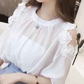 パフスリーブブラウス ボトミングシャツ 花レース 肩開き フラワーレース きれいめ 大人クール スタイリッシュ オトナモード 海外デザイン インポートファッション おすすめ 大人女子 シフォン オフショルダー トップストレンド かわいい 大人可愛い 大人 大人女子 きれいめ おしゃれ お洒落 シンプル ラブリー キュート ガーリー フェミニン 通勤 学生 通学 デート お出かけ 女子会 休日 イベント 普段使い カジュアル こなれ感 ラフ ルーズ 抜け感 人気 ゆる 上品 エレガント 二次会 パーティー