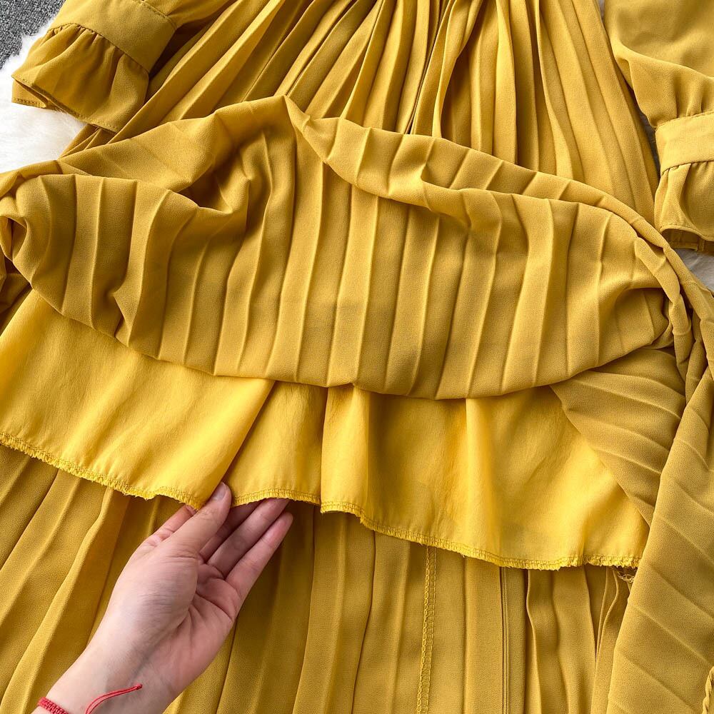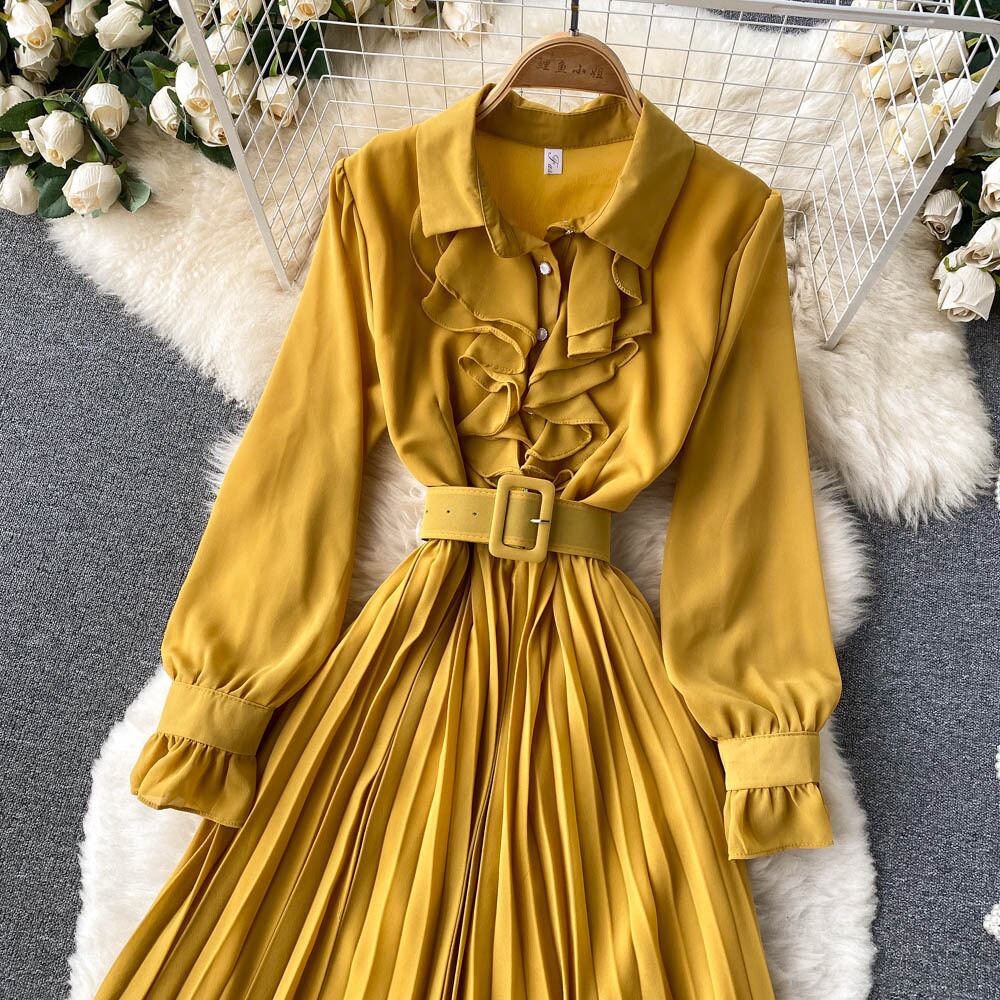 プリーツワンピース 無地 プリーツ ドレス ワンピース ウエストマーク ハイウエスト リボン 長袖 ひざ下丈 ミドル丈 スカート 秋 カラフル 鮮やか 艶やか ビビットカラー レッド イエロー ベージュ ピンク オレンジ ブラック ワンサイズ 女性 レディース 20代 30代 大人女子 女の子 レディ 綺麗 可愛い 上品 キュート クラシック レトロ おしゃれ モテ 女子力 デート パーティ 発表会 誕生日会 おでかけ ハイファッション ファッショナブル デザイン インスタ映え プレゼント リゾート 海外