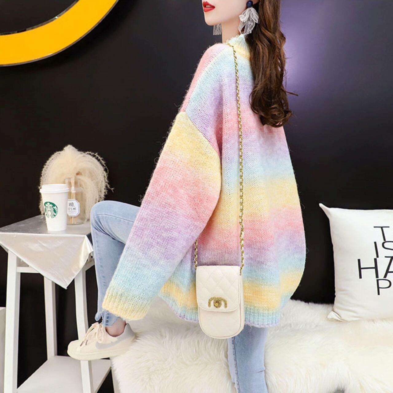 大人可愛いレインボーカラーのニット