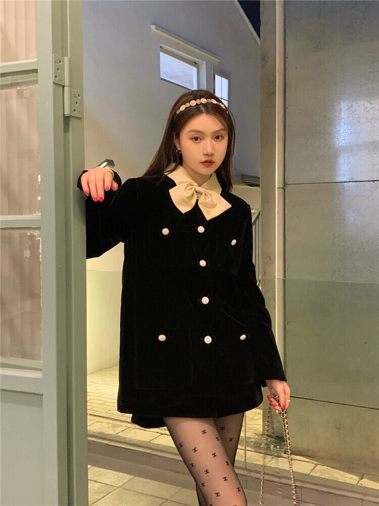 アウター レディース コート ショートコート ショート丈 ショート 袖あり 長袖 襟付き スタンダードカラー 黒 ブラック リボン お人形 かわいい 大人可愛い 大人 大人女子 きれいめ おしゃれ お洒落 シンプル ラブリー キュート ガーリー フェミニン 10代 20代 30代 通勤 学生 通学 デート お出かけ 女子会 休日 普段使い ストレート カジュアル こなれ感 ラフ ルーズ 抜け感 ゆったり ゆる モテ 冬 上品 エレガント 二次会 披露宴 パーティー イベント 防寒 暖かい あったか