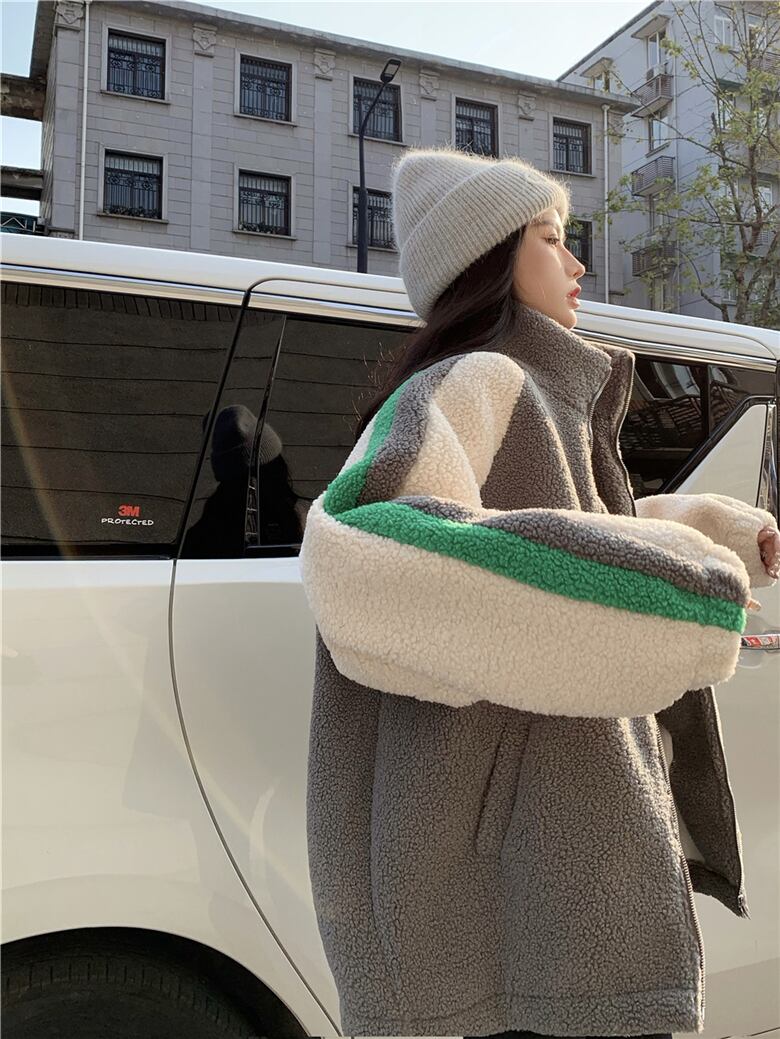 アウター レディース ジャケット ボアジャケット ショートコート コート トリコロール ファスナー オーバーサイズ 袖あり 長袖 前開き スタンドカラー もこもこ モコモコ ふわふわ 厚手 灰色 グレー かわいい 大人可愛い 大人 大人女子 おしゃれ お洒落 シンプル メンズライク マニッシュ ボーイッシュ ユニセックス スポーティー アウトドア 10代 20代 30代 学生 通学 お出かけ 休日 普段使い ストレート 防寒 暖かい あったか カジュアル こなれ感 ラフ ルーズ 抜け感 ゆったり ゆる