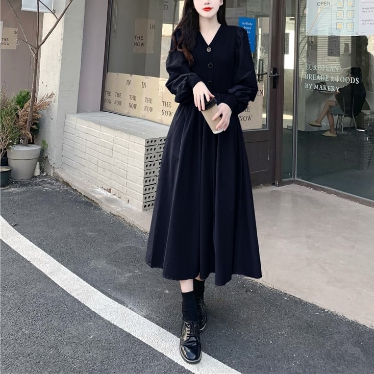 ウエストステッチドレス ワンピース レトロスタイル ロングスカート パフスリーブワンピース 水色 ブラック 青 黒 シャーリング フロントボタン 春 お出かけ着 清潔感 外国スタイル インポートファッション 海外デザイン ふわふわ ボタン かわいい 大人可愛い 大人 大人女子 きれいめ おしゃれ お洒落 シンプル ラブリー キュート 10代 20代 30代 通勤 学生 通学 デート お出かけ 女子会 休日 普段使い インパクト カジュアル こなれ感 ルーズ 抜け感 ゆったり ゆる 上品 エレガント
