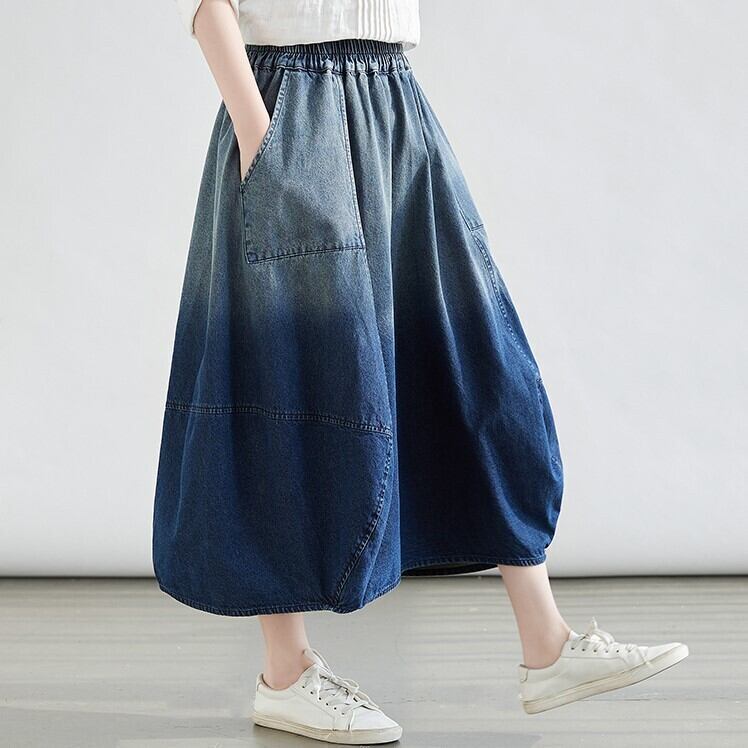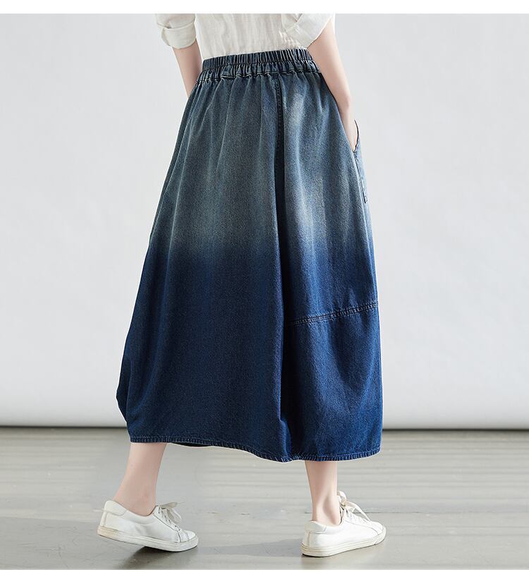 グラデーションカラー デニムスカート Aラインスカート ミドル丈スカート オールマッチ ブルー 青 ボリューム かぼちゃスカート グラデーション 個性的 個性派 デザイン今風 ファッショナブル インポートファッション 海外デザイン 原宿 竹下通り キラキラ かわいい 大人可愛い 大人 大人女子 きれいめ おしゃれ お洒落 シンプル 10代 20代 30代 通勤 学生 通学 デート お出かけ 女子会 休日 普段使い カジュアル こなれ感 ラフ ルーズ 抜け感 ゆったり ゆる 定番 スタンダード 楽ちん