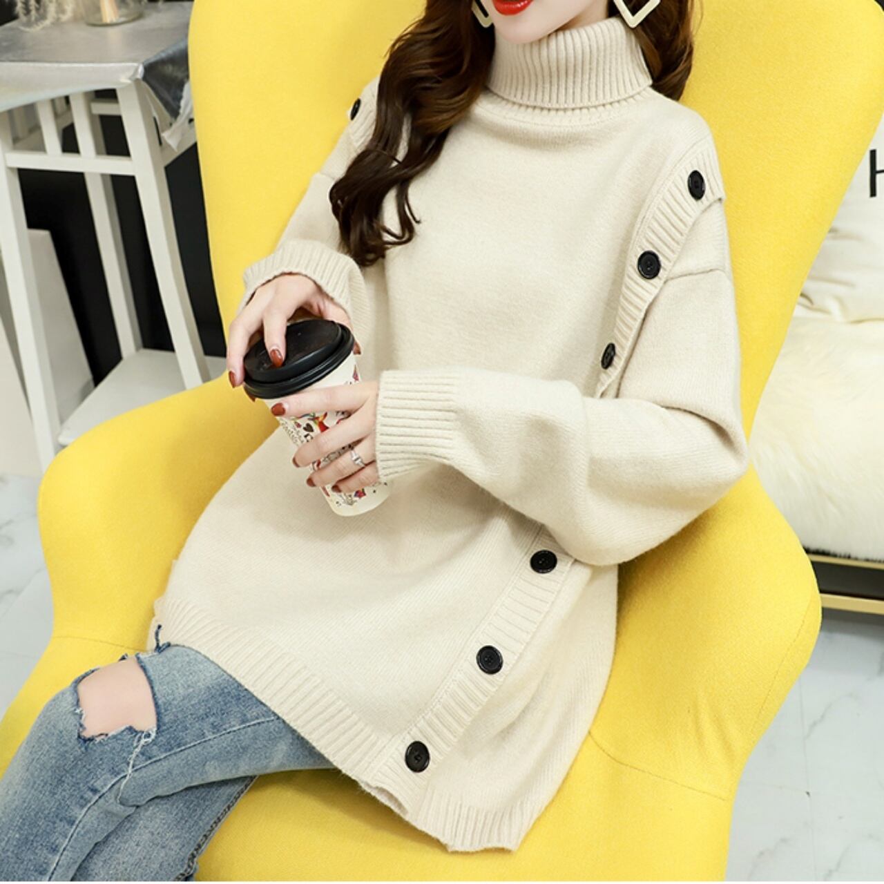 トップス レディース ニット プルオーバー タートルネック ドロップショルダー 長袖 袖長め ゆるめ 丈長め サイドボタン ワンサイズ 秋 冬 カジュアル ラフ ルーズ 大人可愛い かわいい こなれ感 抜け感 オシャレ お洒落 女子ウケ 学生 通学 OL ママ ミセス 公園 旅行 休日 お出かけ ショッピング デート 食事会 女子会 着回し 普段使い 韓国系 インポート 海外ファッション セレクト モテ おすすめ 人気 スタイルアップ 新作 簡単コーデ ハイセンス トレンド 流行 お買い得 主役級 存在感