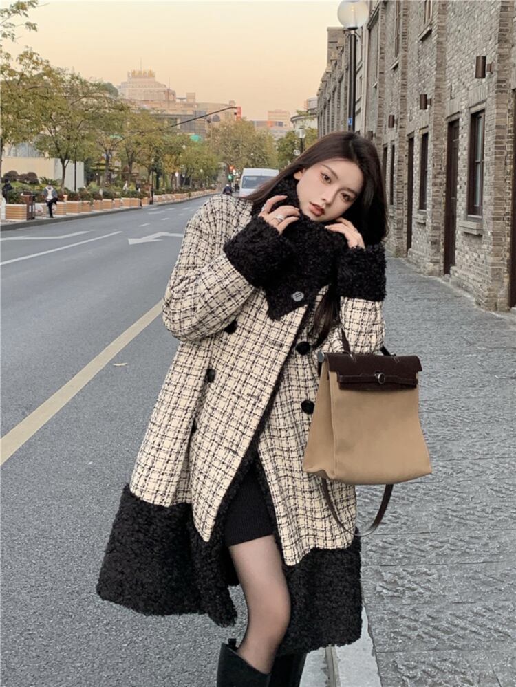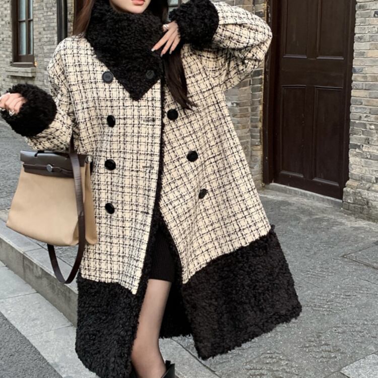アウター レディース コート ロングコート チェック柄 ダブルボタン ボタン ボタンダウン 袖あり 長袖 襟付き 異素材MIX もこもこ モコモコ ふわふわ 黒 ブラック かわいい 大人可愛い 大人 大人女子 きれいめ おしゃれ お洒落 シンプル ラブリー キュート ガーリー フェミニン 10代 20代 30代 通勤 学生 通学 デート お出かけ 女子会 休日 普段使い カジュアル こなれ感 ルーズ 抜け感 ゆったり ゆる 防寒 暖かい あったか 上品 エレガント 二次会 披露宴 パーティー イベント