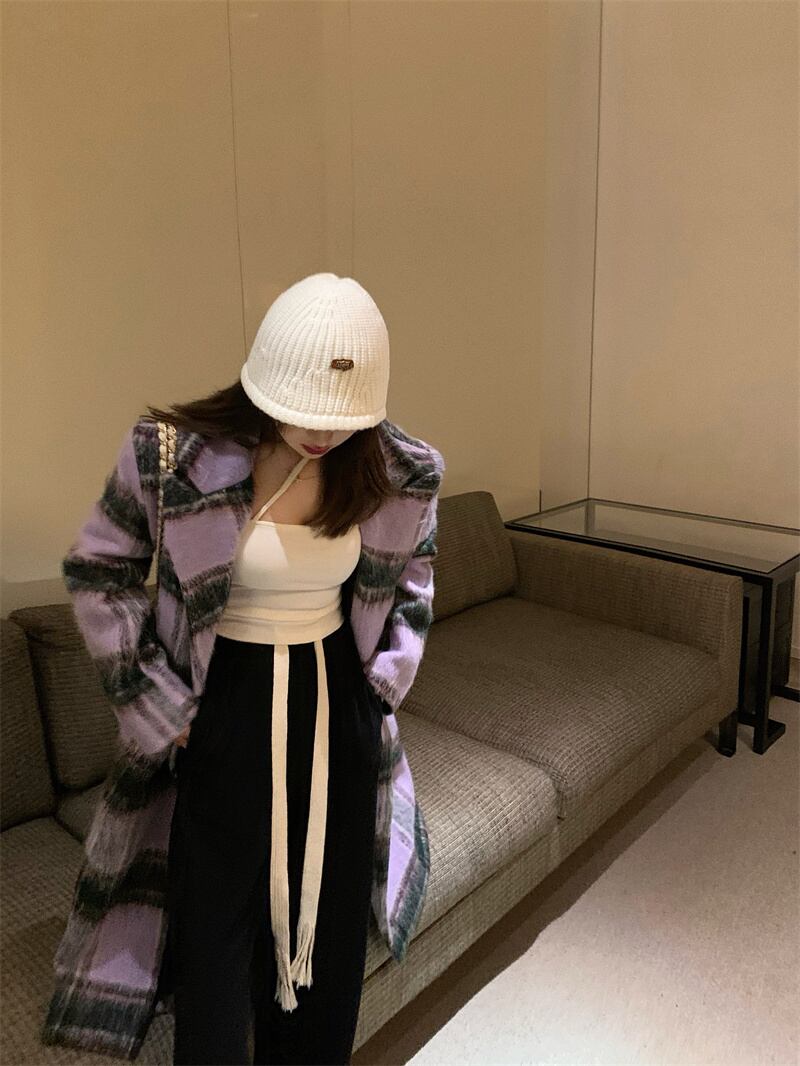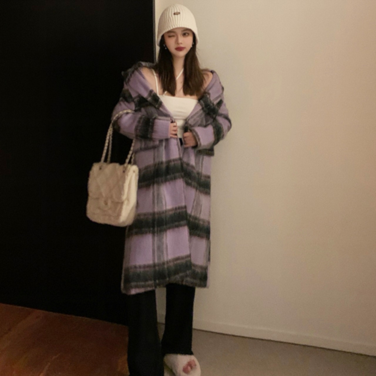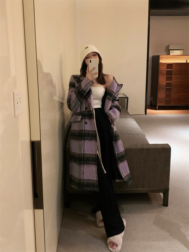 アウター レディース コート ロングコート 袖あり 長袖 襟付き ノッチドラペル ボタン ダブルボタン ボタンダウン 前開き ポケット チェック柄 マドラスチェック 紫 パープル かわいい 大人可愛い 大人 大人女子 きれいめ おしゃれ お洒落 シンプル ラブリー キュート ガーリー フェミニン 10代 20代 30代 通勤 学生 通学 デート お出かけ 女子会 休日 普段使い ストレート カジュアル こなれ感 ラフ ルーズ 抜け感 ゆったり ゆる 防寒 暖かい あったか パーティー イベント モテ