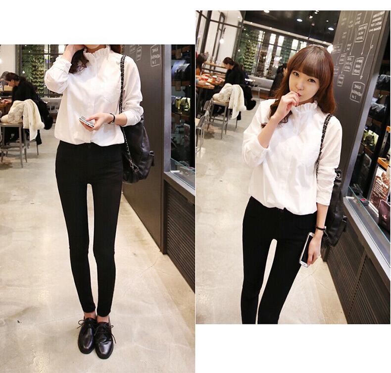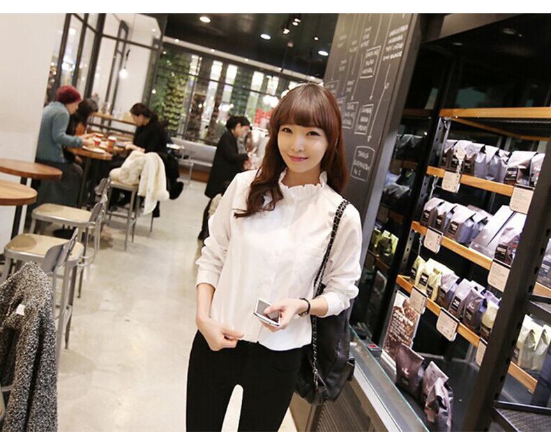 白シャツ レディース 長袖 ホワイトシャツ フリル襟 プチハイネック フロントボタン 前開き 定番白 清潔感 きちんと感 インナーシャツ 綺麗め 上品 着まわせる 可愛い おしゃれ こなれ感 サイズ豊富 白 ホワイト 通勤 通学 面接 面談 デート お食事 オフィス 懇談会 フォーマル 基本アイテム エイジレス 10代 20代 30代 40代 ジャケットインナー 韓国服 韓国ファッション インポート プチプラ 低価格 お買い得 値段重視 高コスパ おしゃれ トレンド 簡単コーデ 着やすい 合わせやすい