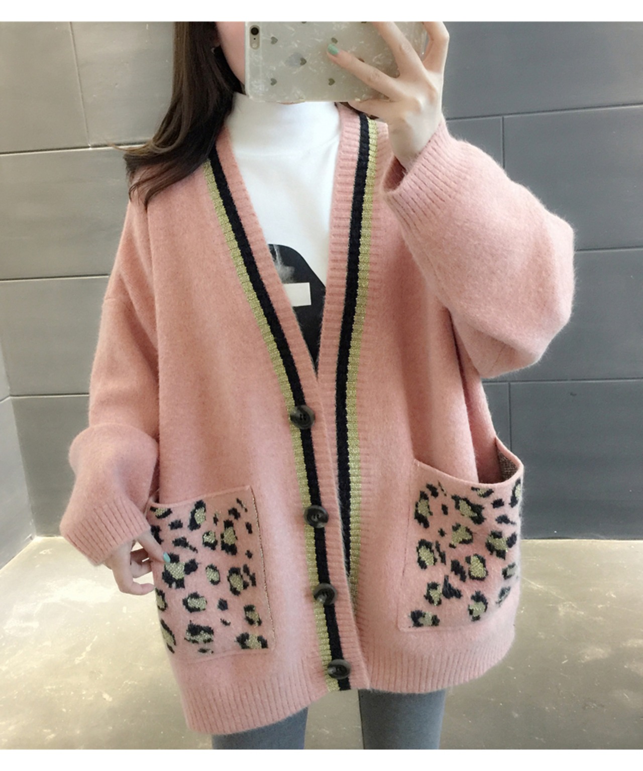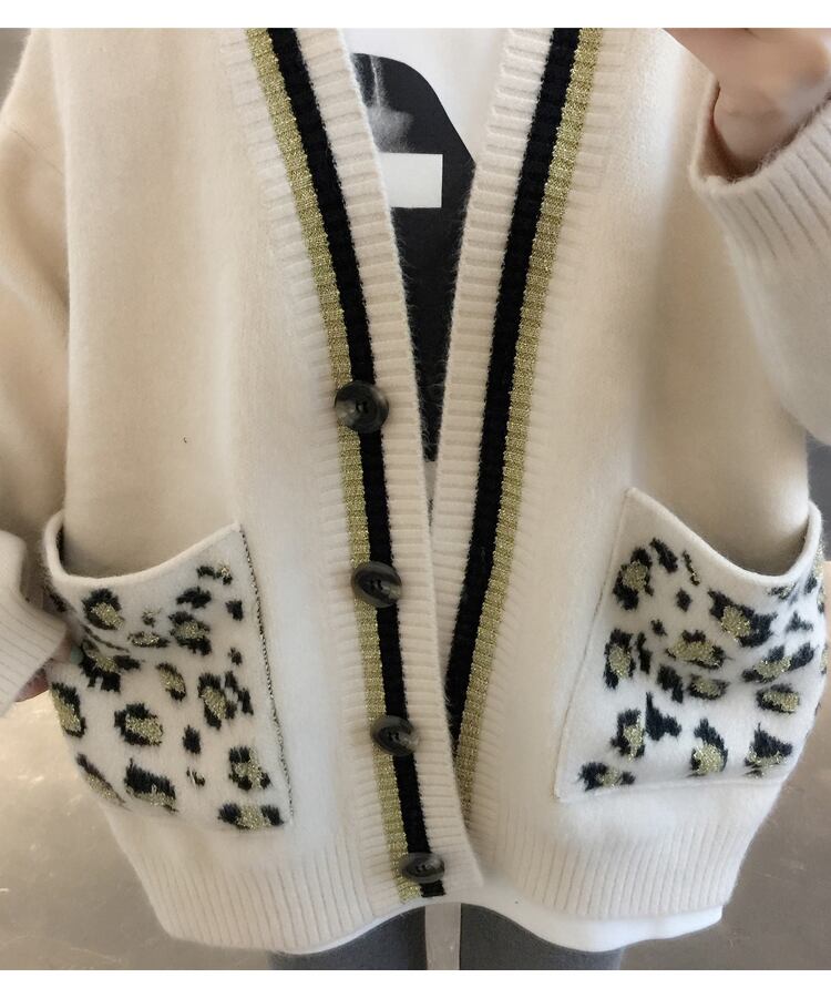 カーディガン ヒョウ柄 アニマル柄 長め丈 Vネック ライン入り リブ袖 ポケット付き ゆったり 大きめサイズ ドロップショルダー レディース 長袖 春秋 ライン入り 白 青 ピンク ブルー グレイッシュ くすみカラー カジュアル ラフ 休日スタイル 公園 ランチ ピクニック 羽織り物 暖か 柔らか素材 かわいい おしゃれ ワンポイント柄 トレンド 大人可愛い 着まわせる 合わせやすい ワンマイルスタイル 韓国ファッション インポート 輸入 韓国服 普段着 普段使い 低価格 プチプラ 値段重視 10代