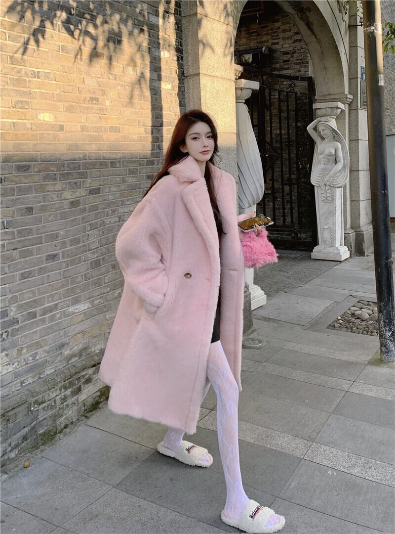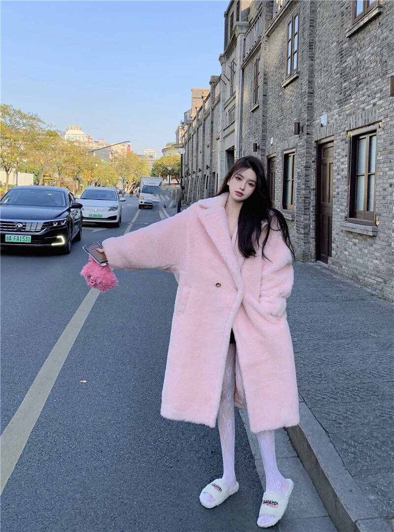 アウター レディースコート もこもこアウター ロングコート 袖あり 長袖 襟付き ノッチドラペル 桜色 ピンク パステルカラー もこもこ モコモコ ふわふわ ボタン ボタンダウン 前開き 厚手 かわいい 大人可愛い 大人 大人女子 きれいめ おしゃれ お洒落 シンプル ラブリー キュート ガーリー フェミニン 10代 20代 30代 通勤 学生 通学 デート お出かけ 女子会 休日 普段使い ストレート 防寒 暖かい あったか カジュアル こなれ感 抜け感 ゆったり ゆる 上品 パーティー イベント