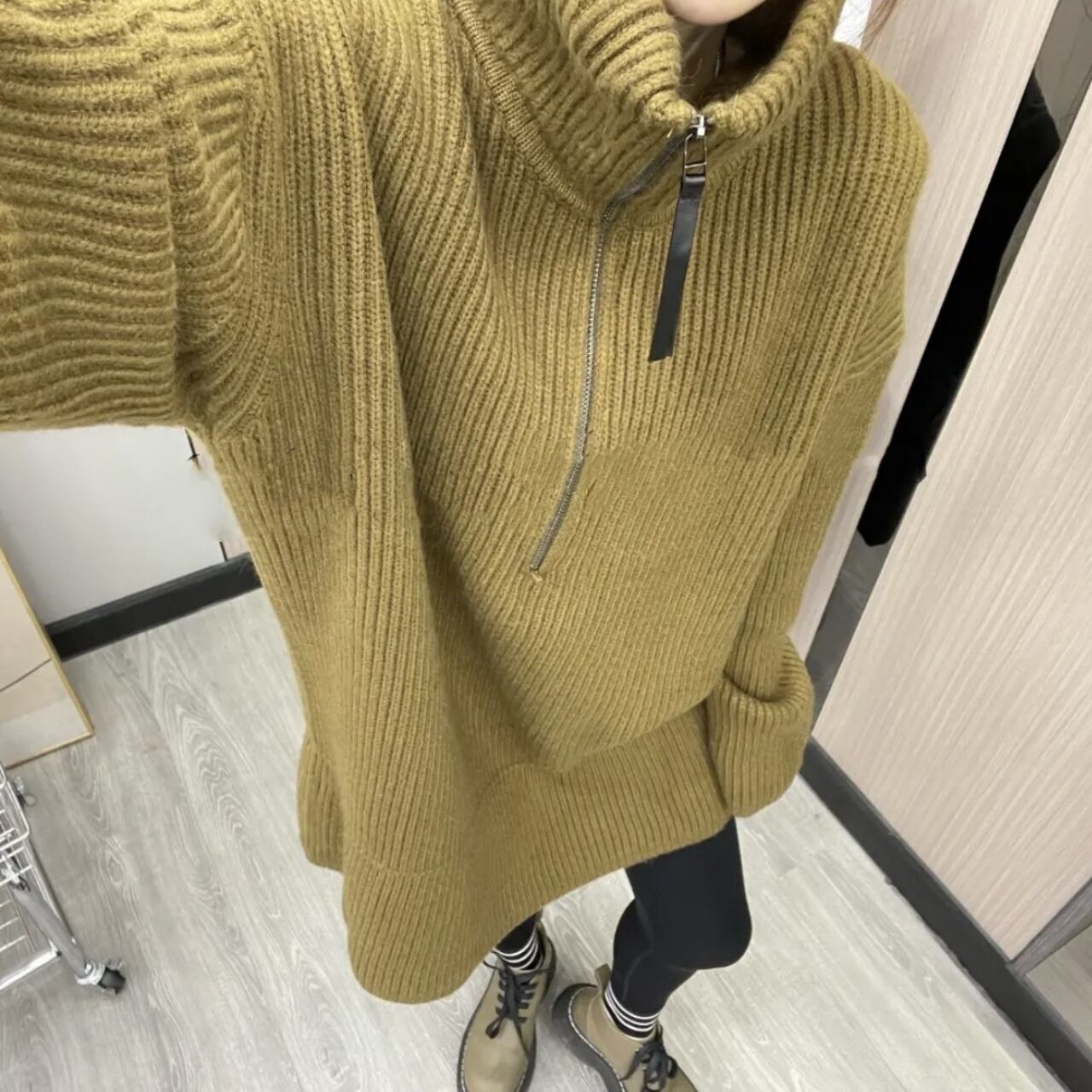 トップス ニット プルオーバー ハイネック ジップ ドロップショルダー レディース 長袖 袖長め ゆるめ 丈長め 5サイズ サイズ豊富 6カラー カラー豊富 秋 冬 カジュアル ラフ ルーズ 大人可愛い かわいい こなれ感 抜け感 オシャレ お洒落 女子ウケ 学生 通学 OL ママ 公園 旅行 休日 お出かけ ショッピング デート 女子会 着回し 普段使い 韓国系 インポート 海外ファッション セレクト モテ おすすめ 人気 スタイルアップ 新作 簡単コーデ ハイセンス トレンド 流行 着やせ効果