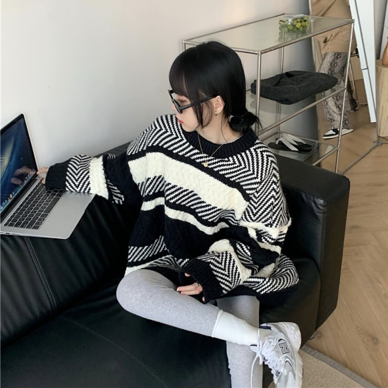 トップス オーバーサイズ レディース ニット プルオーバー ドロップショルダー 長袖 袖長め ランダムボーダー ジャガード編み 4サイズ 秋 冬 カジュアル ラフ ルーズ 大人可愛い かわいい こなれ感 抜け感 オシャレ お洒落 大人女子 女子ウケ 学生 通学 OL ママ ミセス 公園 旅行 休日 お出かけ ショッピング デート 女子会 着回し 普段使い 韓国系 インポート 海外ファッション セレクト モテ おすすめ 人気 スタイルアップ 新作 簡単コーデ ハイセンス トレンド 流行 重ね着 着やせ効果
