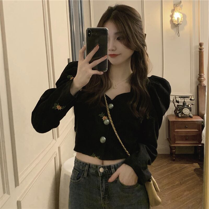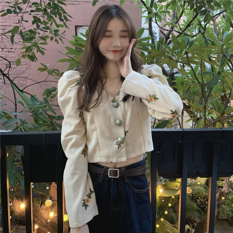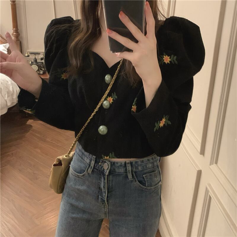 ブラウス シャツ 白 ホワイト 黒 ブラック 袖あり 長袖 ベルスリーブ パフスリーブ トップス レディース 襟なし ボタン ボタンダウン 前開き へそ出し かわいい 大人可愛い 大人 大人女子 きれいめ おしゃれ お洒落 シンプル ラブリー キュート ガーリー フェミニン 10代 20代 30代 通勤 学生 通学 デート お出かけ 女子会 休日 普段使い カジュアル こなれ感 ルーズ 抜け感 ゆる 披露宴 パーティー イベント ひまわり ヒマワリ 向日葵 フローラル 花柄 小花柄 フラワー ボタニカル