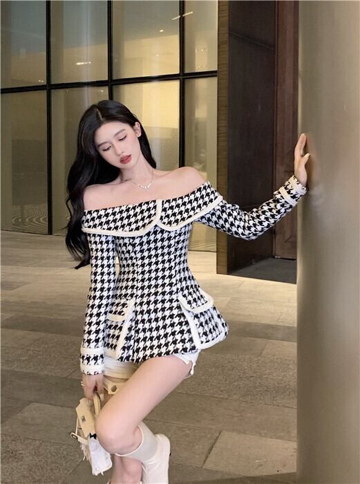 ジャケット モノトーン 白 ホワイト 黒 ブラック チェック柄 千鳥格子 ハウンドトゥースチェック トップス レディース 袖あり 長袖 オフショルダー オフショル ポケットかわいい 大人可愛い 大人 大人女子 きれいめ おしゃれ お洒落 シンプル ラブリー キュート ガーリー フェミニン 10代 20代 30代 学生 通学 デート お出かけ 女子会 休日 普段使い インパクト カジュアル こなれ感 ラフ ルーズ 抜け感 セクシー 披露宴 主役級 レトロ パーティー イベント 旅行 個性的 存在感 モテ
