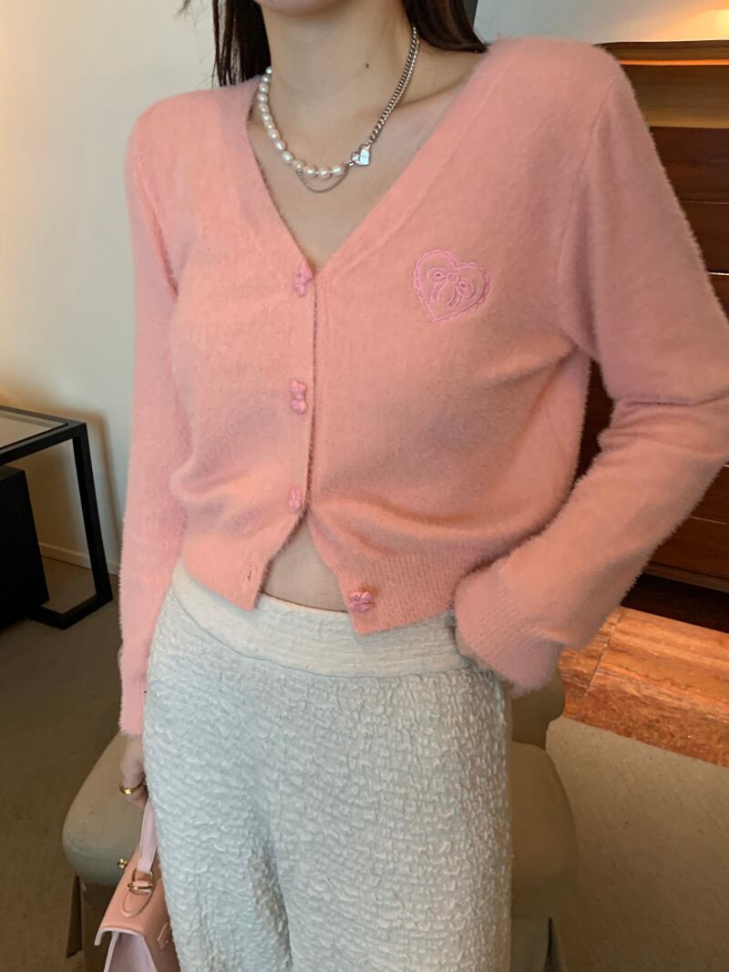 トップス レディース カーディガン 羽織 袖あり 長袖 襟なし リボン ハート ボタン ボタンダウン 前開き 定番 スタンダード 刺繍 ピンク 黒 ブラック ふわふわ かわいい 大人可愛い 大人 大人女子 きれいめ おしゃれ お洒落 シンプル ラブリー キュート ガーリー フェミニン 10代 20代 30代 通勤 学生 通学 デート お出かけ 女子会 休日 普段使い カジュアル モテ 旅行 こなれ感 ラフ ルーズ 抜け感 個性的 とろみ感 ゆったり ゆる パーティー イベント 着回し 楽ちん 重ね着