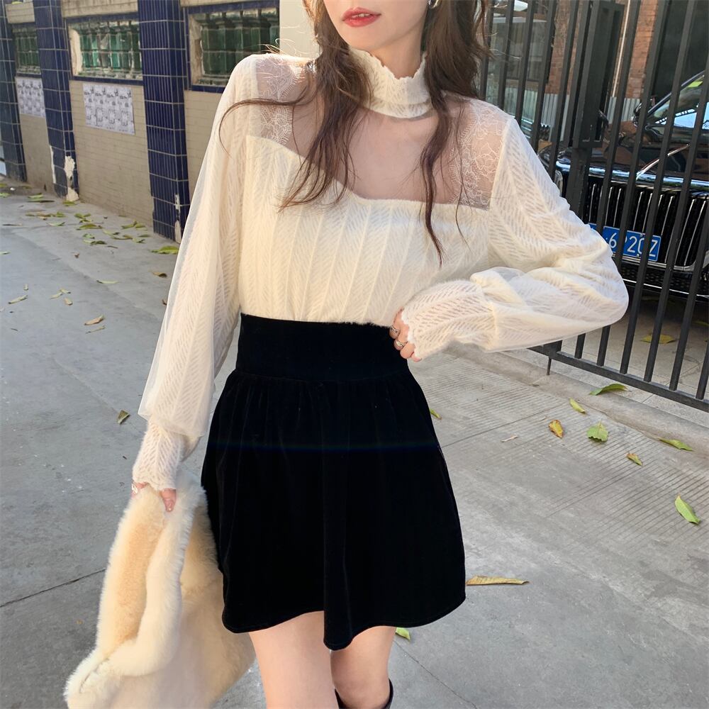 トップス シャツ ブラウス レース 透け感 とろみ シースルー フリル 白 アプリコット 黒 ブラック かわいい長袖 ハイネック トレンド 人気 きれいめ イリュージョンネック フリルスタンドカラー レース チュール 大人可愛い 大人 大人女子 きれいめ おしゃれ お洒落 シンプル ラブリー キュート ガーリー フェミニン 10代 20代 30代 通勤 学生 通学 デート お出かけ 女子会 休日 普段使い カジュアル こなれ感 ラフ ルーズ 抜け感 ゆったり ゆる 二次会 披露宴 パーティー イベント