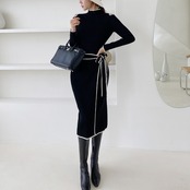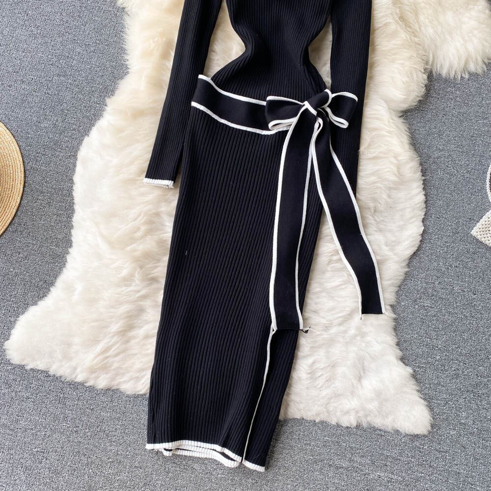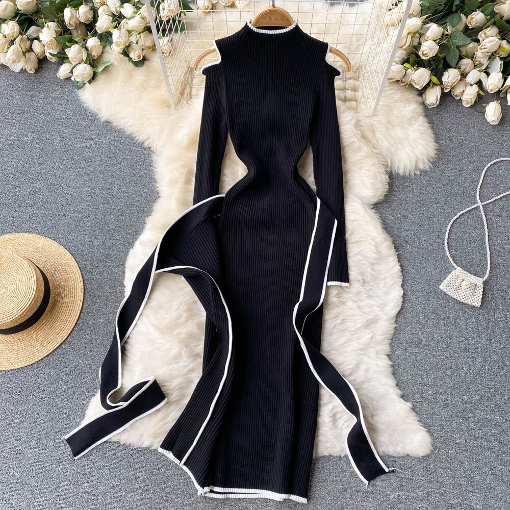 ニットワンピース ニットスカート ロングスカート 巻きスカート ロング丈 ロング 袖あり ワンピース レディース 長袖 オープンショルダー Uネック ラウンドネック 伸縮性 縁取り ウエストマーク ウエストリボン リボン モノトーン 黒 ブラック かわいい 大人可愛い 大人 大人女子 きれいめ おしゃれ お洒落 シンプル ラブリー キュート ガーリー フェミニン 10代 20代 30代 学生 デート お出かけ 女子会 休日 普段使い カジュアル 上品 エレガント セクシー 二次会 パーティー イベント