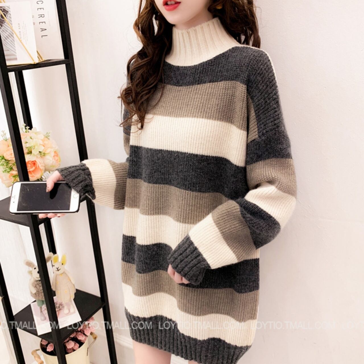 ニット チュニック プルオーバー ハイネック ドロップショルダートップス レディース マルチボーダー 5サイズ サイズ豊富 2カラー 秋 冬 カジュアル ラフ ルーズ ゆる 大人可愛い かわいい こなれ感 抜け感 オシャレ お洒落 きれいめ 大人女子 女子ウケ 学生 通学 OL ママ ミセス 公園 旅行 休日 お出かけ ショッピング デート 女子会 着回し 普段使い 韓国系 インポート 海外ファッション セレクト モテ おすすめ 人気 スタイルアップ 新作 簡単コーデ ハイセンス トレンド 流行 楽ちん
